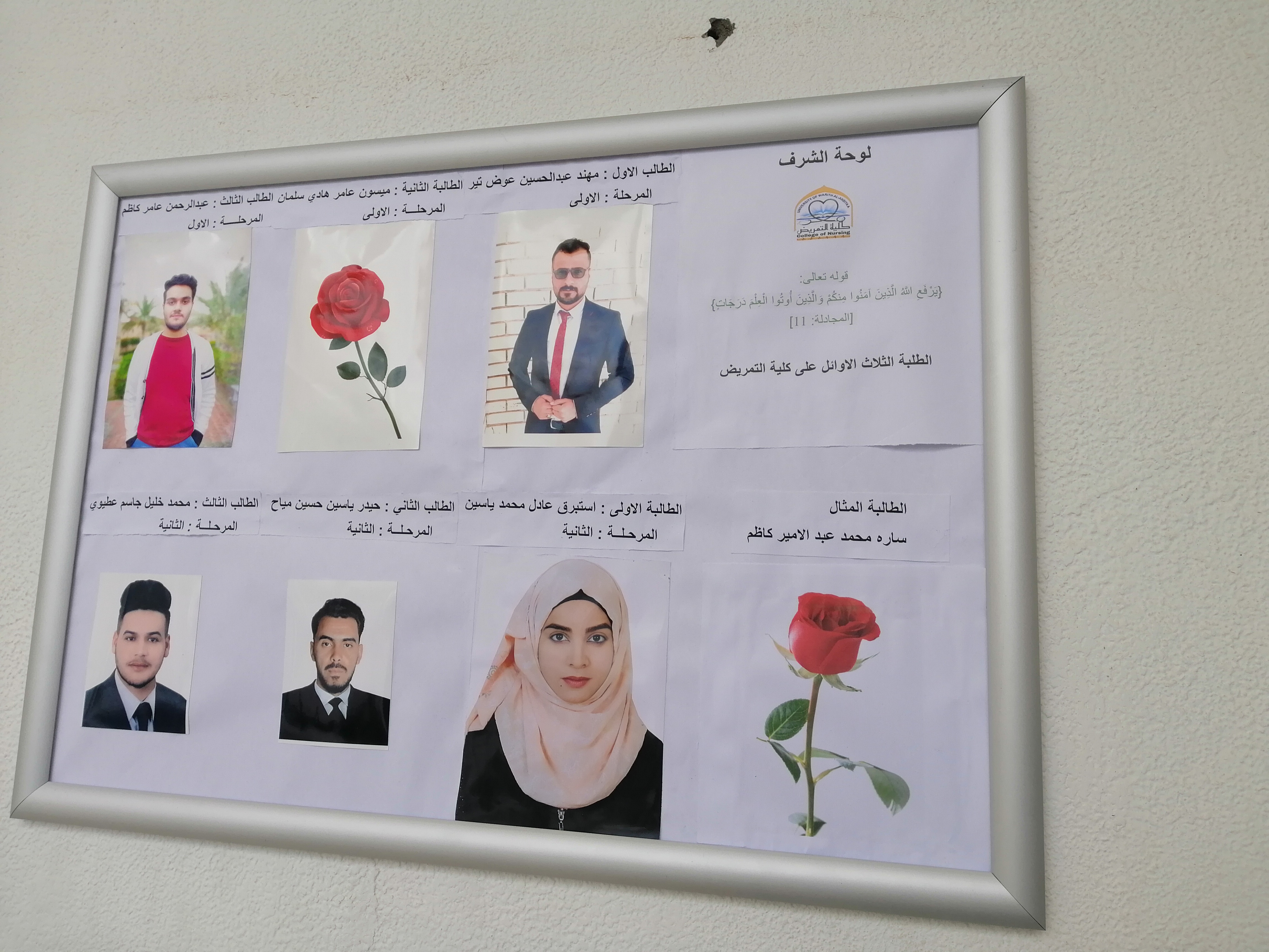 بادرت كلية التمريض بتعليق لوحة الشرف للطلبة الأوائل.