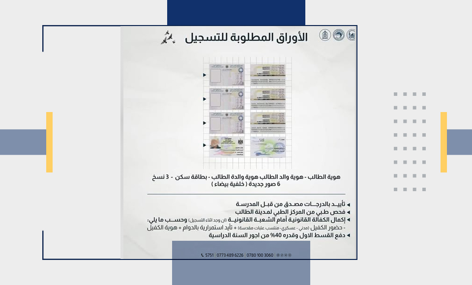 فريق التسجيل متواجد لاستقبالكم ومساعدتكم في إتمام عملية التقديم من الساعة ٨صباحا ولغاية المساء.