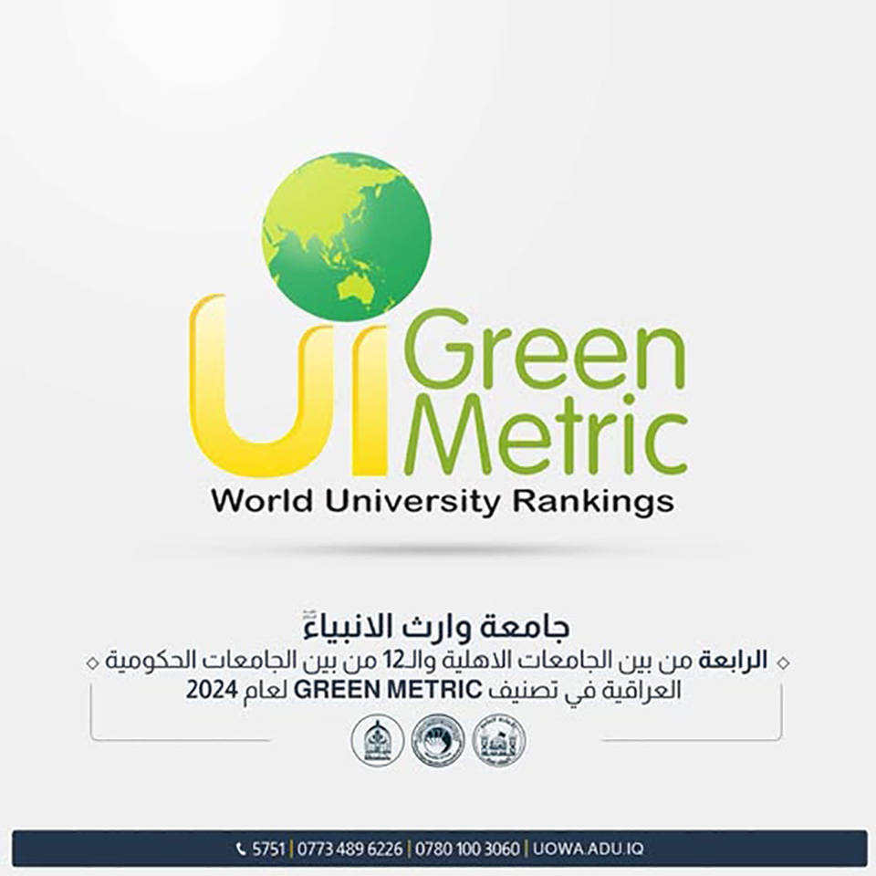 حققت جامعة وارث الأنبياء (عليه السلام) إنجازًا علميًا متميزًا بحصولها على المرتبة الرابعة بين الجامعات الأهلية في العراق والمرتبة الثانية عشرة بين جميع الجامعات العراقية، في تصنيف (UI Green Metric) العالمي. يعكس هذا الإنجاز التزام الجامعة بتحسين جودة التعليم العالي والبحث العلمي، مما يعزز مكانتها بين المؤسسات التعليمية المرموقة.