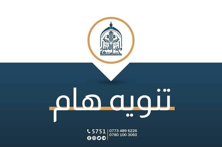تنويه مهم من جامعة وارث الأنبياء (عليه السلام) لجميع الطلبة: نود التأكيد أن التقديم على المنحة المجانية في كلية الطب يتم حصراً من خلال وزارة التعليم العالي والبحث العلمي، عبر القنوات الرسمية للتقديم.