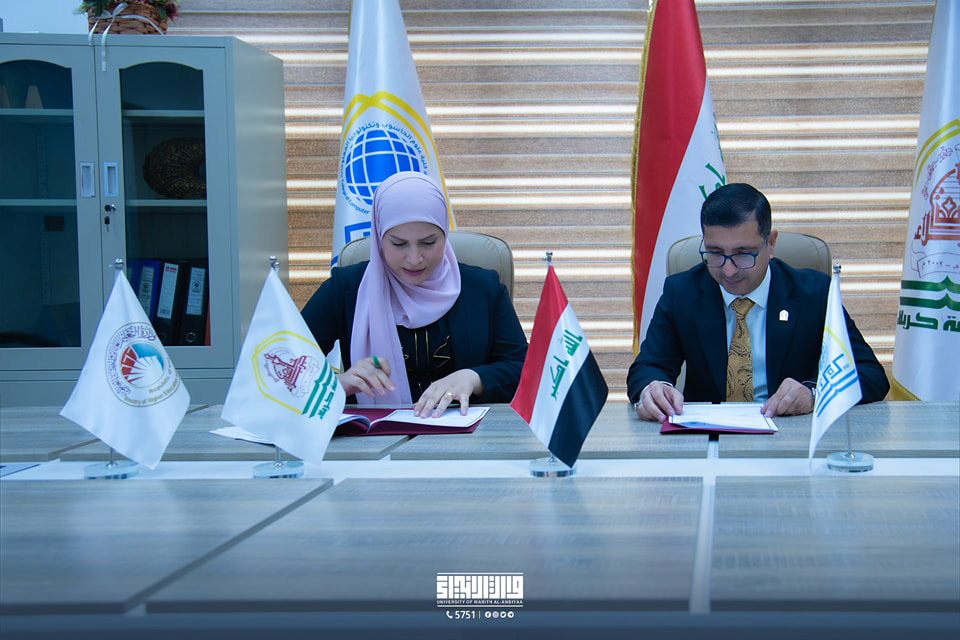 وقعت عميدة كلية العلوم، الأستاذ المساعد الدكتورة شيماء حسين نوفل، اتفاقية توأمة علمية مع عميد كلية علوم الحاسوب وتكنولوجيا المعلومات في جامعة كربلاء، الأستاذ المساعد الدكتور موفق كاظم الحسناوي، لتعزيز التعاون الأكاديمي بين الجامعتين.