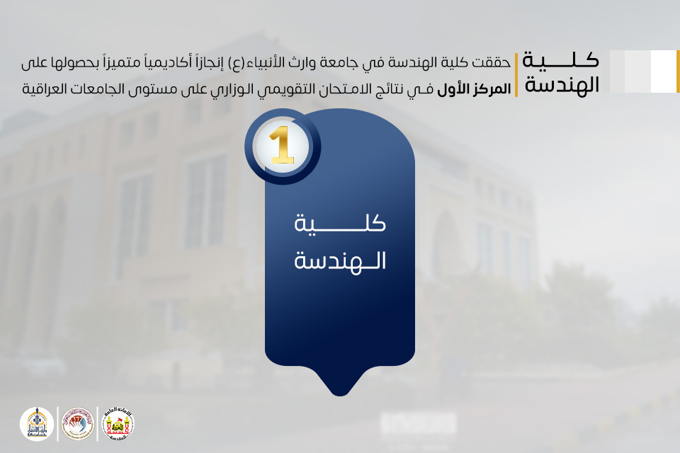 حققت كلية الهندسة في جامعة وارث الأنبياء (عليه السلام) إنجازاً أكاديمياً نوعياً بتصدرها نتائج الامتحان التقويمي الوزاري على مستوى الجامعات العراقية، بحسب التصنيف الرسمي الصادر عن وزارة التعليم العالي والبحث العلمي، في مؤشر يعكس جودة المخرجات التعليمية وتميّز الأداء الأكاديمي.
