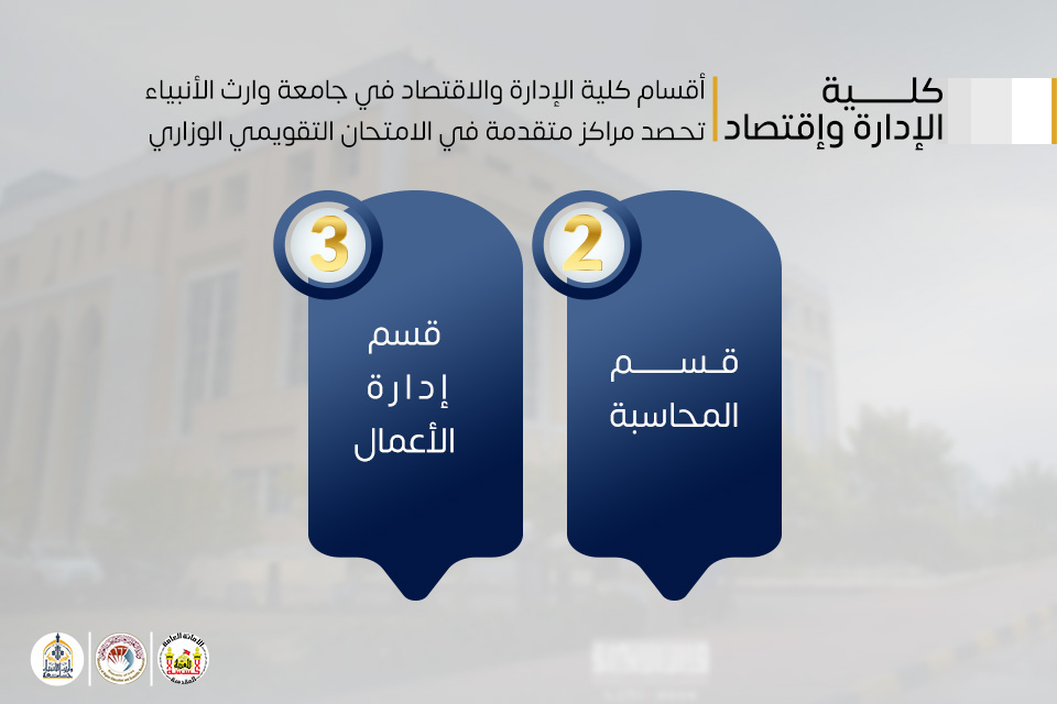 حققت كلية الإدارة والاقتصاد في جامعة وارث الأنبياء (عليها السلام) إنجازًا أكاديميًا لافتًا بحصول عدد من أقسامها العلمية على مراكز متقدمة في الامتحان التقويمي الوزاري على مستوى الجامعات العراقية، ما يعكس جودة التعليم الأكاديمي والتطور المستمر في برامجها الدراسية.