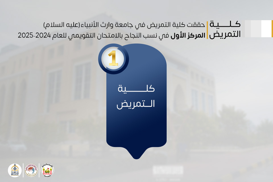 حققت كلية التمريض في جامعة وارث الأنبياء (عليه السلام) إنجازًا أكاديميًا متميزًا بحصولها على المركز الأول في نسب النجاح بالامتحان التقويمي للعام الدراسي 2024–2025، وذلك وفقًا للتقرير الرسمي الصادر عن وزارة التعليم العالي والبحث العلمي، في مؤشر واضح على جودة العملية التعليمية وكفاءة المخرجات الأكاديمية.