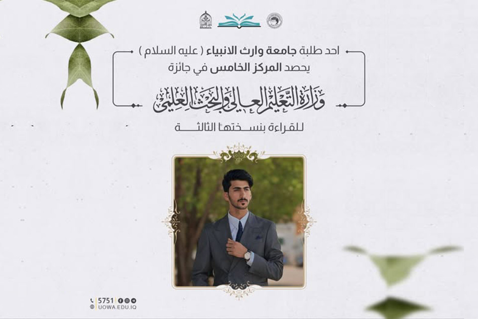 طالب من جامعة وارث الأنبياء يحصد المركز الخامس في جائزة القراءة الوطنية