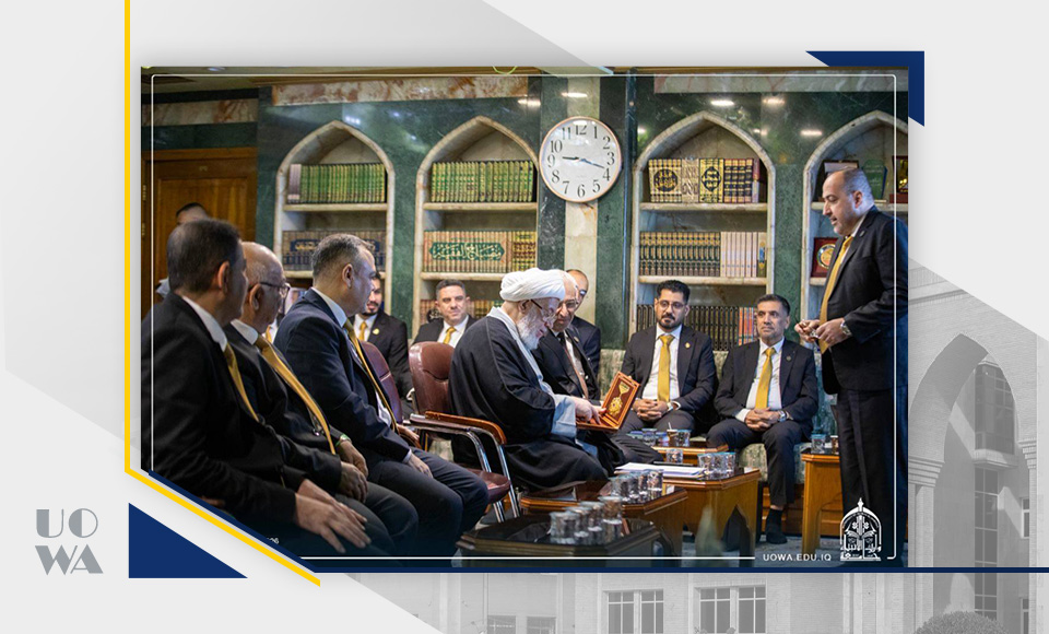 جاء ذلك خلال استقبال سماحته لرئيس الجامعة الأستاذ الدكتور إبراهيم سعيد الحياوي وأعضاء مجلس الجامعة، اليوم السبت، حيث اطّلع على أبرز المشاريع والإنجازات التي حققتها الجامعة، ومن بينها حصولها على المركز الثاني ضمن الجامعات المتميزة في جوائز يوم العلم العراقي لعام 2025، والذي يُعد إنجازاً وطنياً يُضاف إلى سجل الجامعة الأكاديمي.