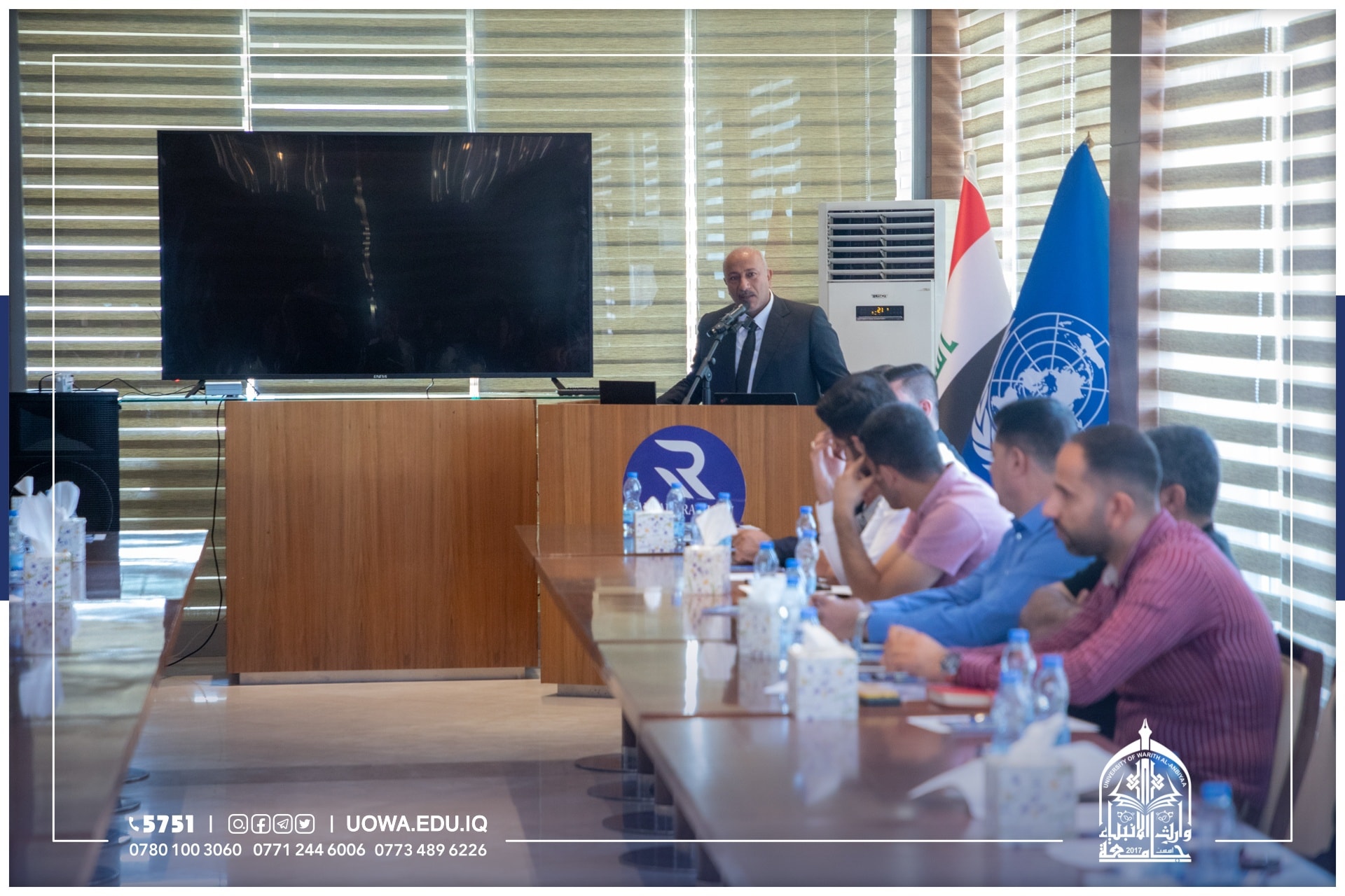 حيث قدم رئيس قسم الشؤون العلمية الاستاذ المساعد الدكتور انمار فالح ديكان ورشة عمل لعمادة كليتي الهندسة والقانون عن المنصة، قدم فيها شرحا مفصلاً عن آلية العمل في المنصة والتسجيل فيها وكيفية اضافة البحوث العلمية ونسب الانجاز بالإضافة الى الورش التي يروم التدريسي تقديمها وغيرها من المميزات لحوكمة الخطة العلمية في الجامعة.