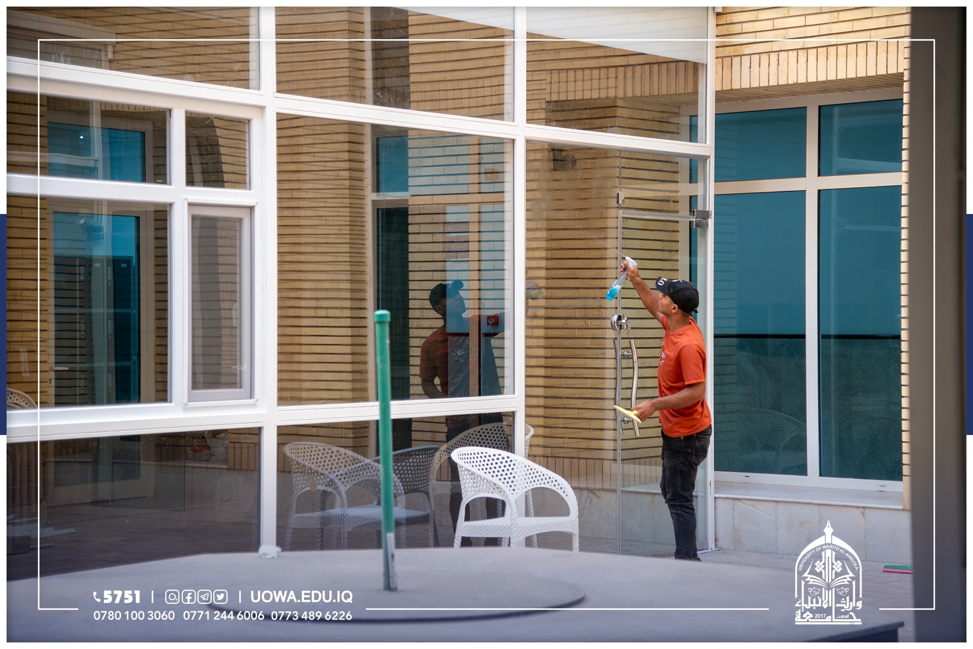 بهمة عالية وجهود مضنية، ملاكات قسم الديوان تسابق الزمن لإعادة تأهيل أروقة ومرافق الجامعة قبل بدء العام الدراسي الجديد.