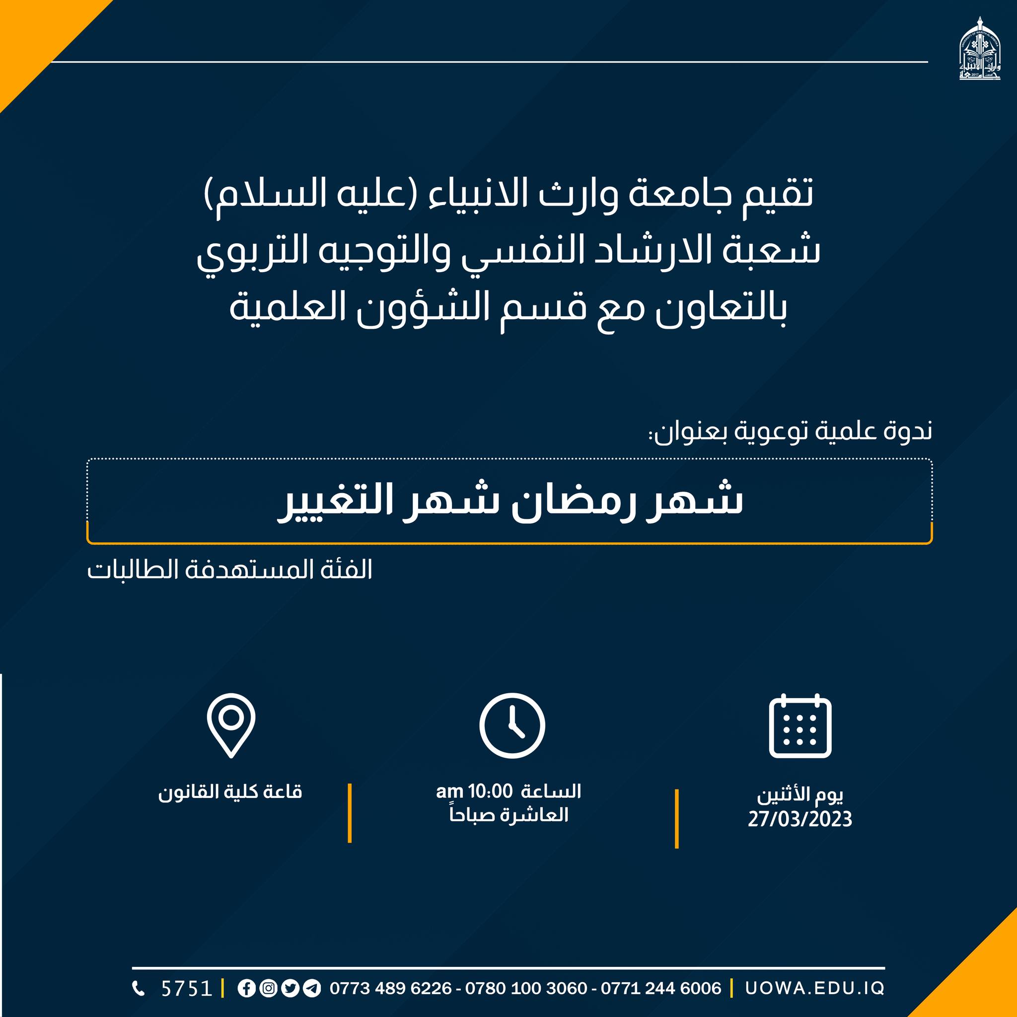 تقيم جامعة وارث الأنبياء (عليه السلام)، شعبة الإرشاد النفسي والتوجيه التربوي