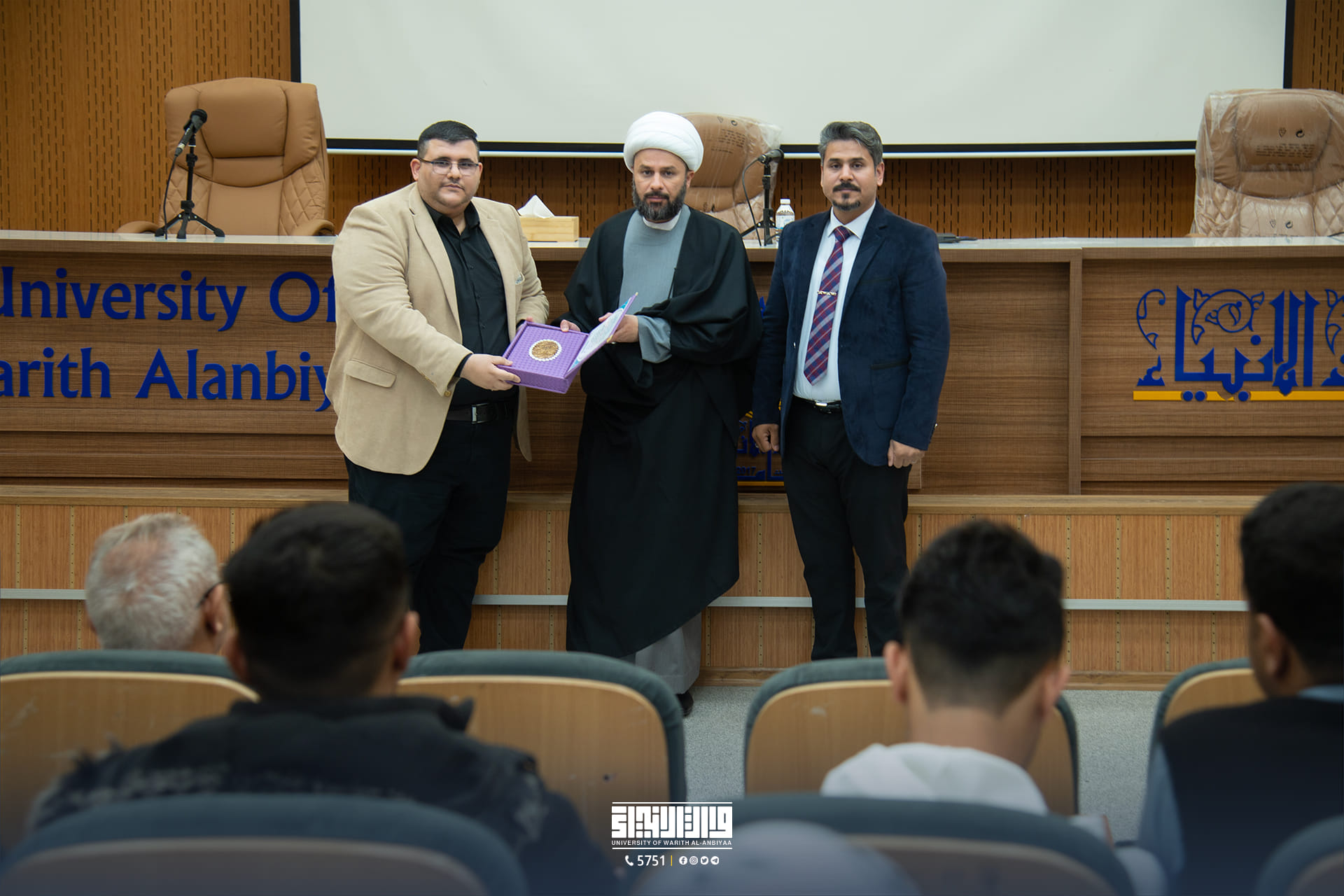 In the distinguished presence of university students, the Deanship of the College of Engineering at the University of Warith Al-Anbiyaa (peace be upon him) hosted the Al-Husseini preacher His Eminence Sheikh Zaman Al-Hasnawi (may his success be long) to present a cultural symposium under the title (The Divine Project in its Seven Stages).