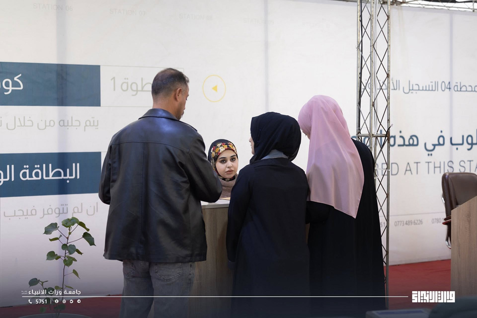 The Admissions Department at the University of Warith Al-Anbiyaa continues to welcome our dear students and their respected parents and guardians, in order to assist them in completing the first stage of the application process.