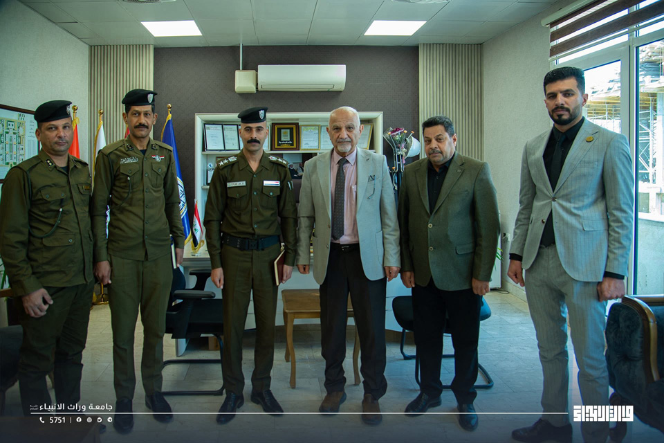 The Vice President for Administrative Affairs, Professor Dr. Nawfal Al-Araji, received a delegation from the Karbala Governorate Police Command headed by the Director of the Department for Martyrs and the Wounded.