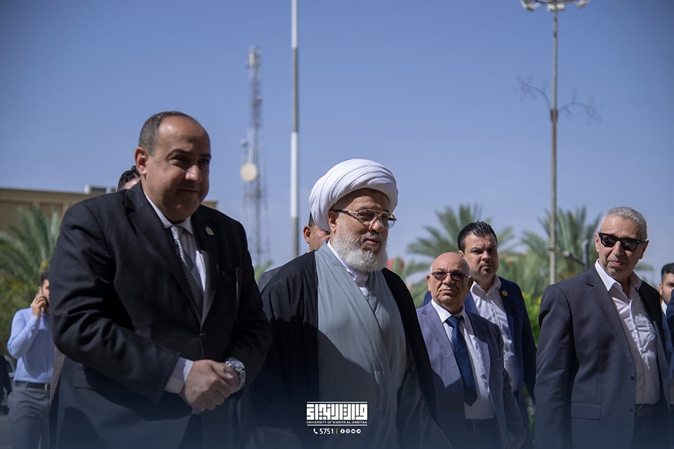 His Eminence Sheikh Abdul Mahdi Al-Karbalai stressed the importance of paying attention to the scientific aspect and using all available capabilities for that, as well as attracting both Iraqi and international competencies and expertise to teach at the university, support scientific research, and encourage researchers in this area with the aim of reflecting a positive image on the quality of scientific outputs. The visit was intended to discuss ways to develop the educational process, from the scientific, academic, and administrative aspects, in an effort to achieve the desired goals of advancing and distinguishing the educational mission. His Eminence emphasised the significance of considering psychological and educational counsel, pointing out that it is just as vital as the scientific part.