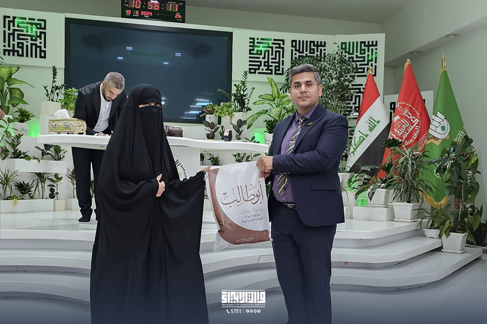 Zahraa Ibrahim Mahdi, a student in the Biomedical Engineering Department at the College of Engineering, accomplished a noteworthy feat by taking first place in the "Read" competition, which was held at the Holy Shrine of Imam Hussein (PBUH) and organised by the Human Resources Development Department.