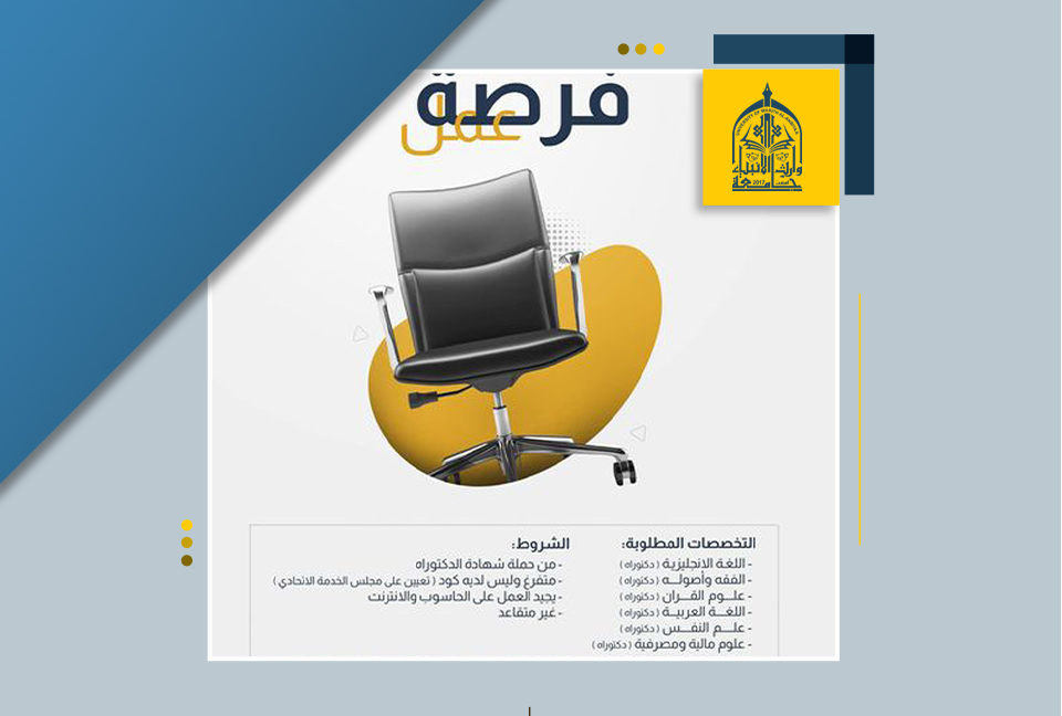 The University of Warith Al-Anbiyaa (PBUH), College of Islamic Sciences, announces its need for degree holders: