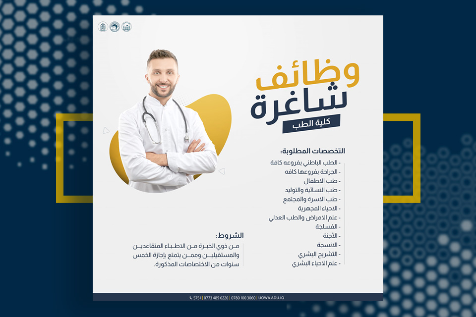 The College of Medicine at the University of Warith Al-Anbiyaa (PBUH) announces its need to employ doctors in the following specialties: