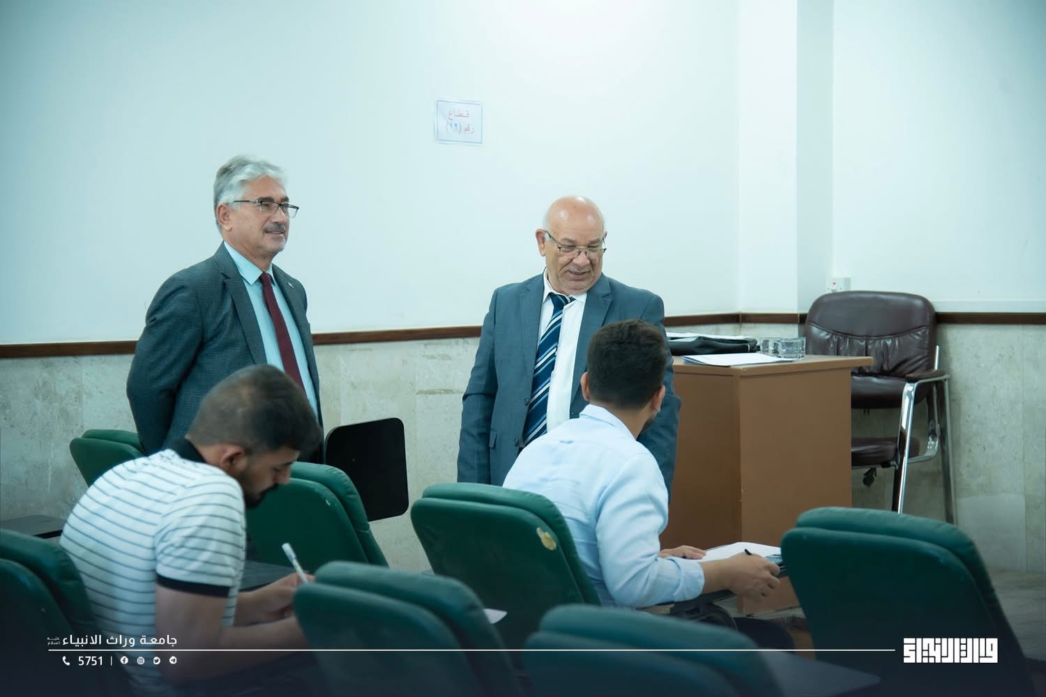 Students of the College of Administration and Economics at the University of Warith Al-Anbiyaa are taking the second-round examinations in a highly organized atmosphere, under the direct supervision of the esteemed Dean.