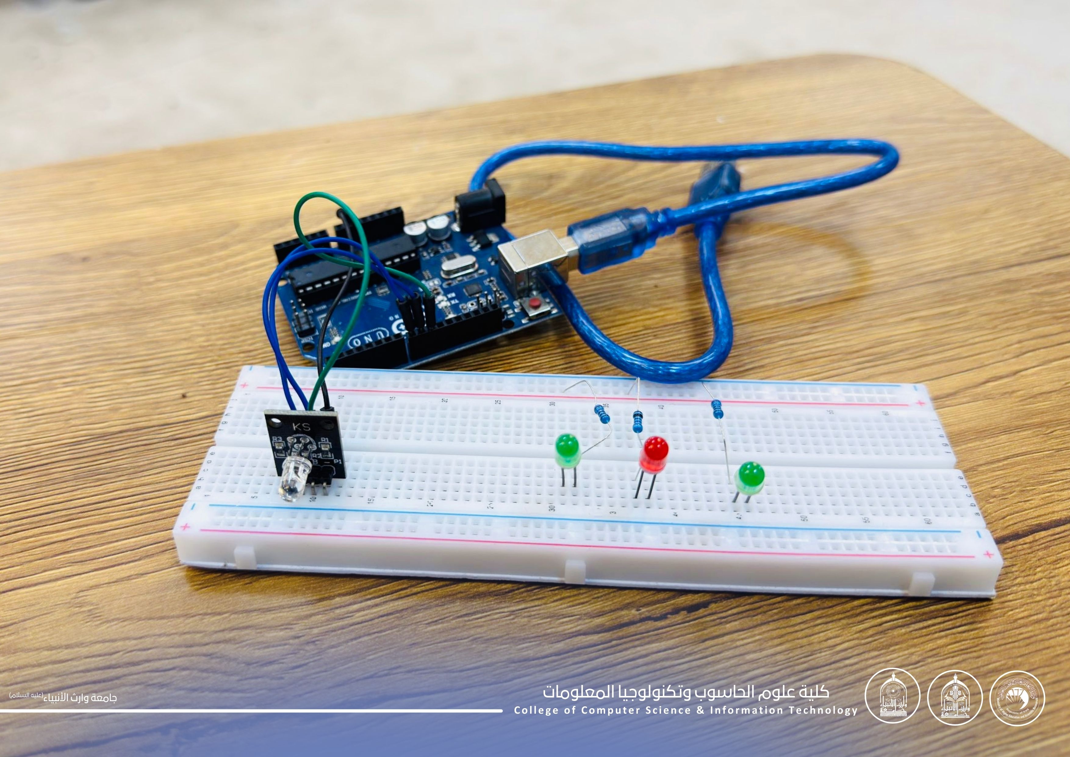 The activities of the Arduino Learning Workshop continued for the second consecutive day at the College of Computer Science and Information Technology – University of Warith Al-Anbiyaa (peace be upon him), with notable interaction from first-year students.