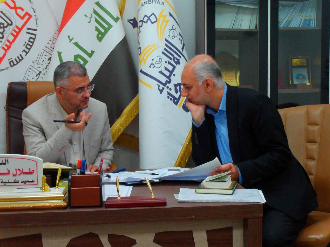The Dean of the College of Islamic Sciences at Warith Al-Anbiyaa University (peace be upon him), Dr. Talal Faiq Al-Kamali, held a meeting with faculty members to discuss a range of academic and administrative issues related to the conduct of the educational process at the college.