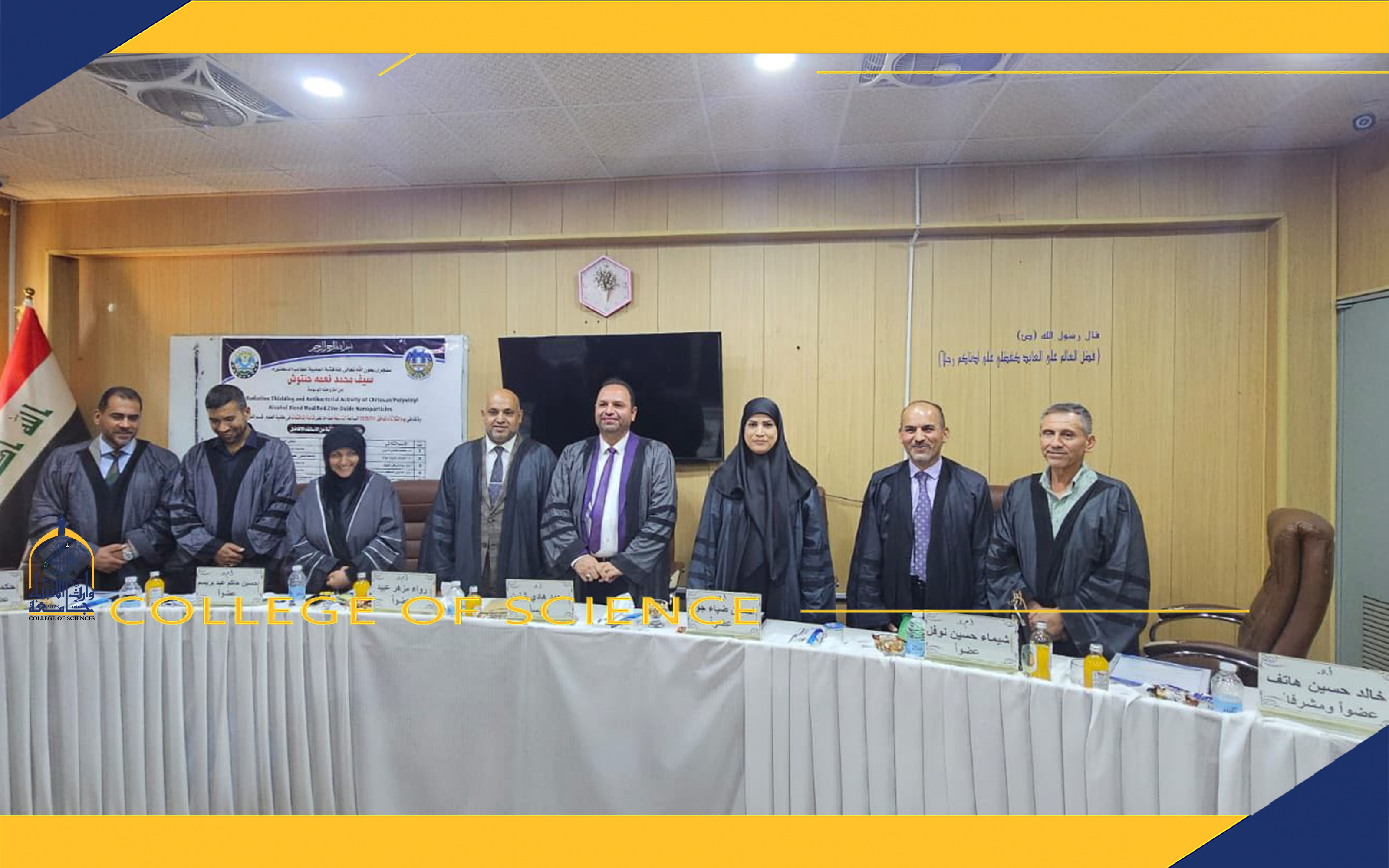 On Wednesday, 9/18/2024, Prof. Dr. Adeeb Ahmed Al-Zubaidi, Head of the Department of Pharmacology at the College of Medicine - Warith Al-Anbia University (peace be upon him), participated as a member and supervisor in the committee to discuss the thesis of the doctoral student (Raed Saad) in the Department of Pharmacology - College of Medicine / University of Nahrain, entitled: