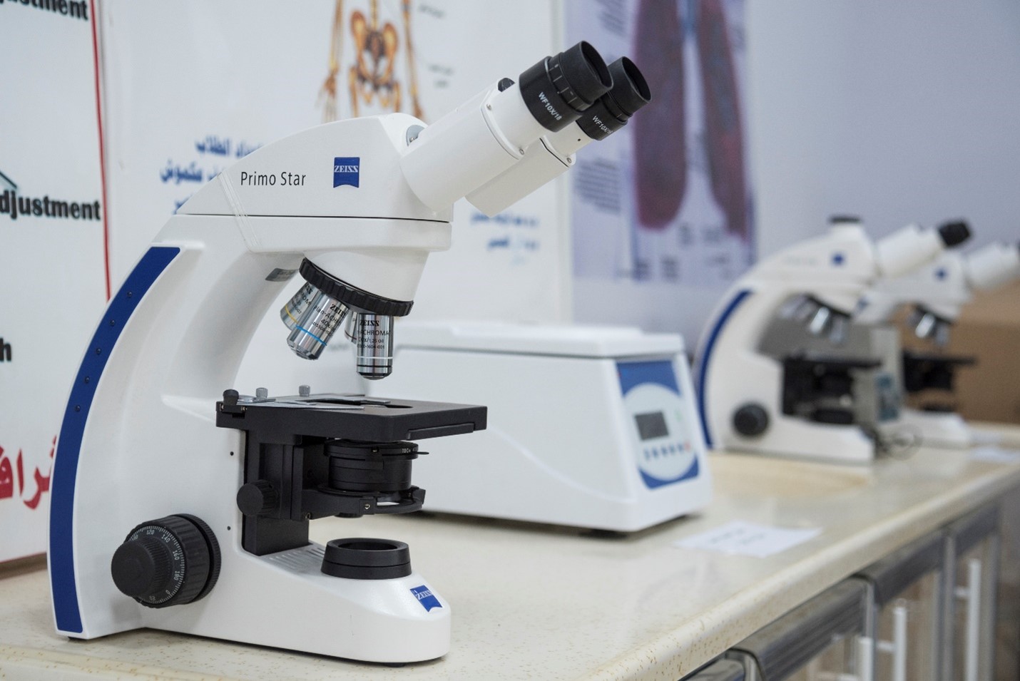 The Microbiology Lab provides sufficient and comprehensive scientific information to identify the types, shapes, and sizes of most types of bacteria, fungi, and viruses, as well as to diagnose them and facilitate their identification using modern means of electronic devices, laboratory materials, and their role in the process of diagnosing diseases accurately, safely, and effectively.