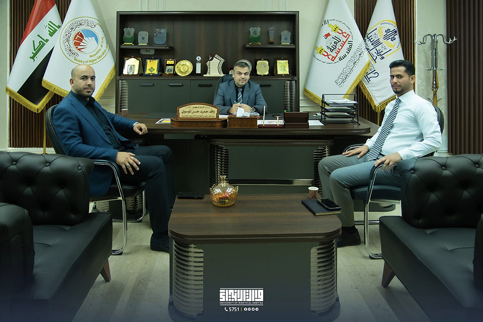 Professor Dr. Waqed Al-Moussawi, Vice President for Scientific Affairs at the University of Warith Al-Anbiyaa, welcomed Assistant Professor Ahmed Qasim Muhammad, representative of Al-Muthanna University and Director of the Continuous Education Centre. They met to discuss advancements at the Continuous Education Centre of the University of Warith Al-Anbiyaa (PBUH).