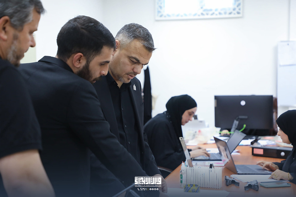 Professor Dr. Waqid Al-Moussawi, Vice President for Scientific Affairs at the University of Warith Al-Anbiyaa (PBUH), conducted an inspection tour to review the examination committee at the College of Medicine, in addition to the final exams for the first-year students at the College of Media.