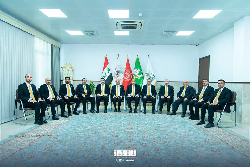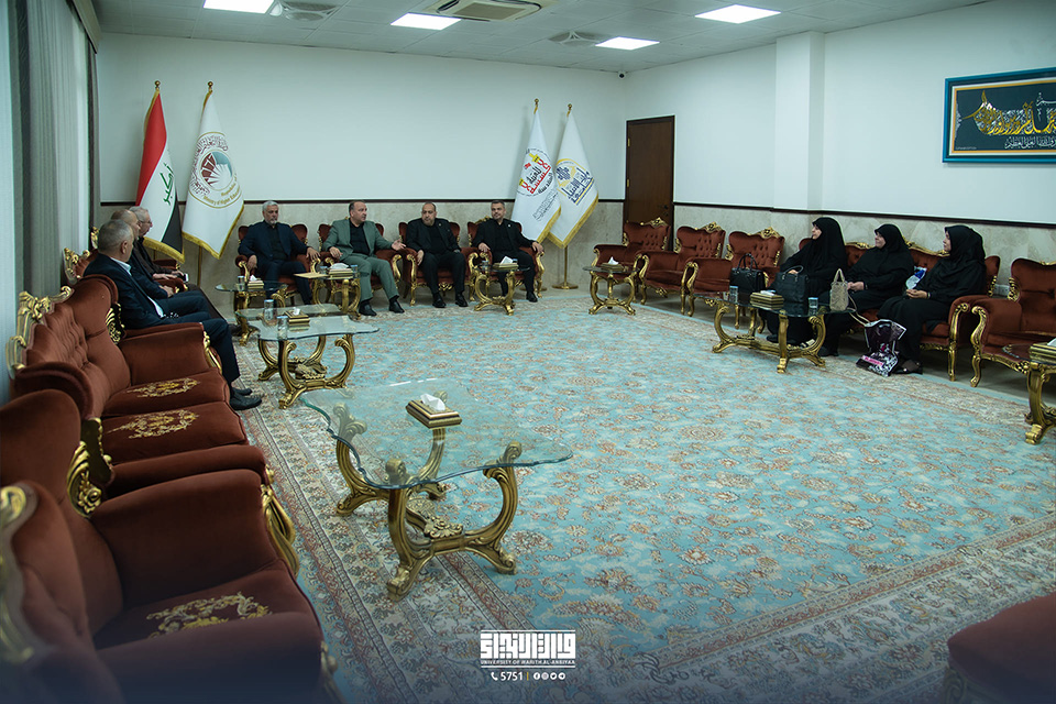 The Karbala Centre for Studies and Research at the Holy Shrine of Imam Hussein sent a delegation, which was met in an official meeting by Professor Dr. Ibrahim Al-Hayawi, President of the University of Warith Al-Anbiyaa (PBUH), and Professor Dr. Waqid Al-Moussawi, Vice President for Scientific Affairs.