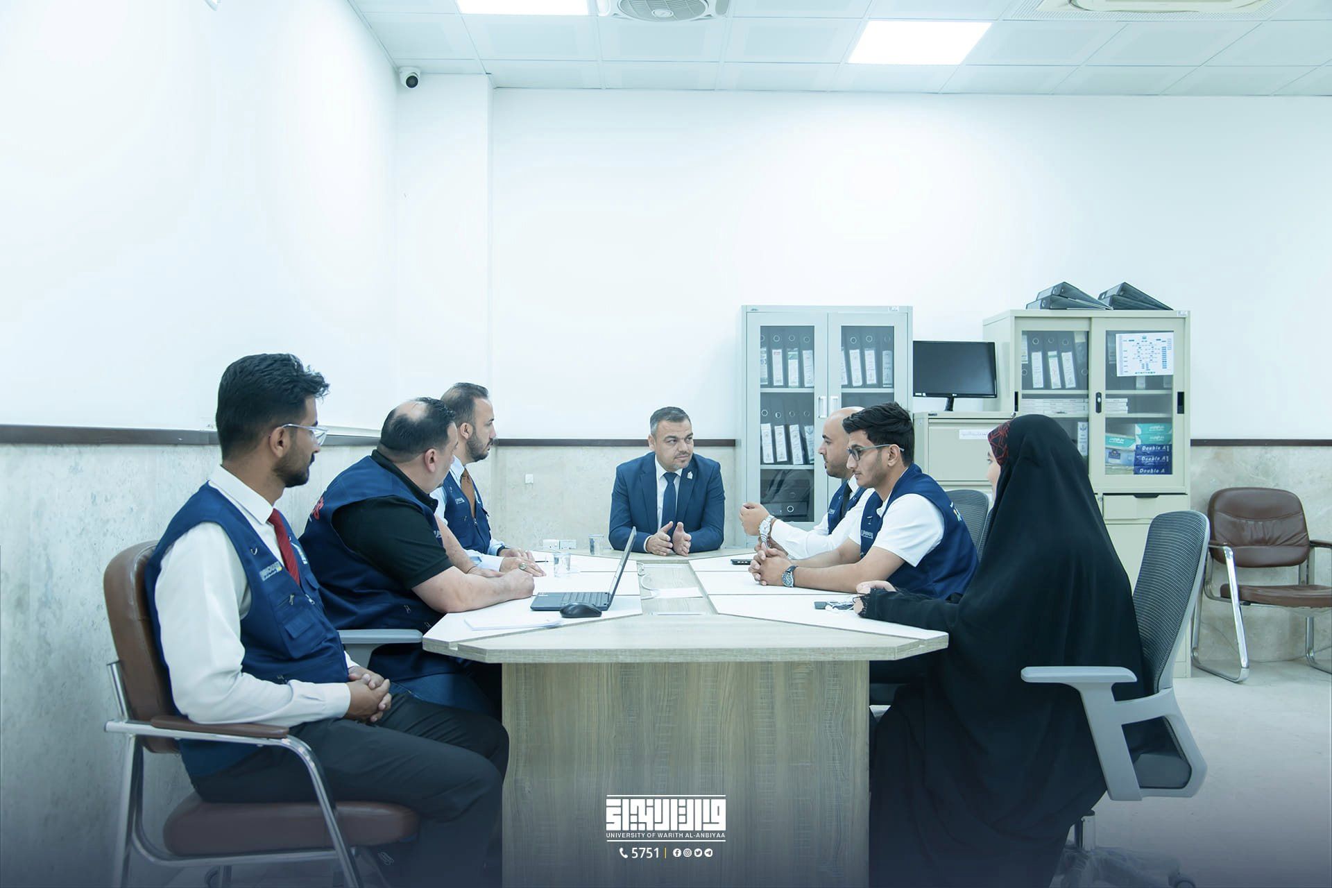 The Karbala Centre for Studies and Research at the Holy Shrine of Imam Hussein sent a delegation, which was met in an official meeting by Professor Dr. Ibrahim Al-Hayawi, President of the University of Warith Al-Anbiyaa (PBUH), and Professor Dr. Waqid Al-Moussawi, Vice President for Scientific Affairs.