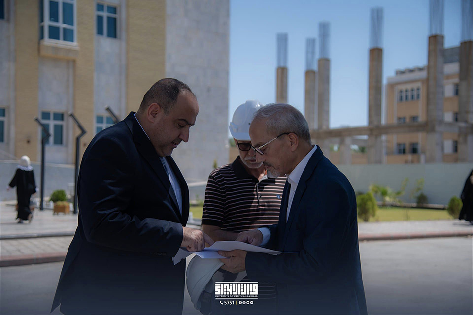 The University President, Professor Dr. Ibrahim Al-Hayawi, conducted an inspection tour inside the university's corridors to ensure ongoing field follow-up, which in turn improves the quality of the finished work. Al-Hayawi was briefed on the current state of development and construction projects, together with their completion rates.